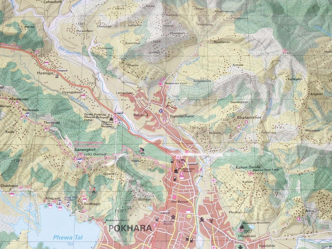 It was downhill all the way this time, and we cycled all the way back without a break in 1 hour and 15 mins! It is quite astonishing how 500m vertically can make such a huge difference. The cycle back was very pleasant and the scenery, especially up the top of the valley near Naudunda, was amazingly beautiful and very unspoilt. Coming back into Pokhara we really noticed the comparative fuminess, dustiness and congestion, even though Pokhara is very nice compared to Kathmandu.