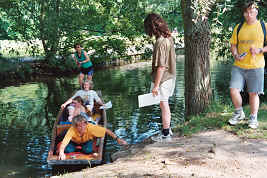 Then to the punts; but on an extremely hot day in the middle of the tourist season we had quite a wait until 2 became available. Never mind, we eventually boarded and were ready to start by about 3:00pm. There were 5 running legs and 5 punting legs. The pattern involved dropping off a runner, punting to the given point and collecting the runner, then punting across the river to drop off next runner, and so on. The basic rules stated that each team member had to run a leg AND punt one of the legs (but not at the same time!).